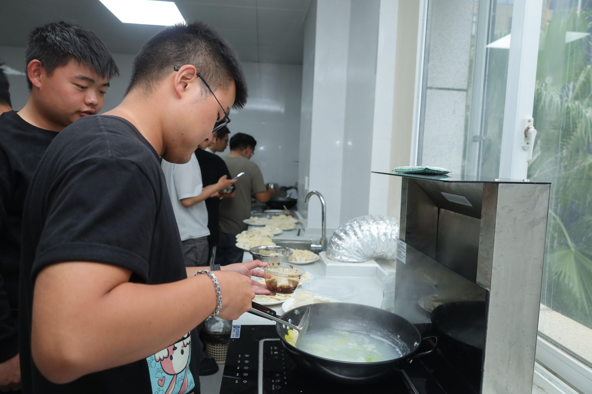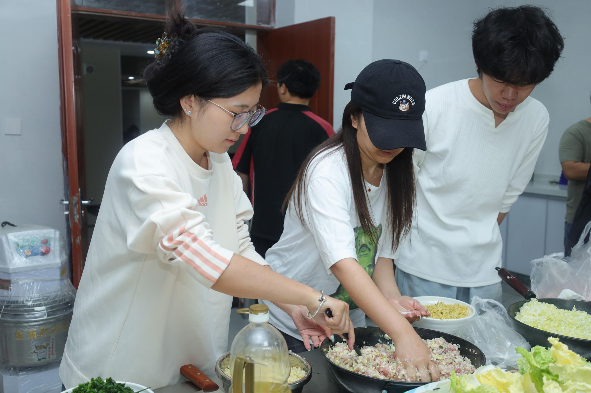 国庆、中秋双节期间,机械工程系为了让留校未回家的学子依旧能感受到家的温暖,组织值班干部和教师在学院共享食堂开展了烹饪活动。