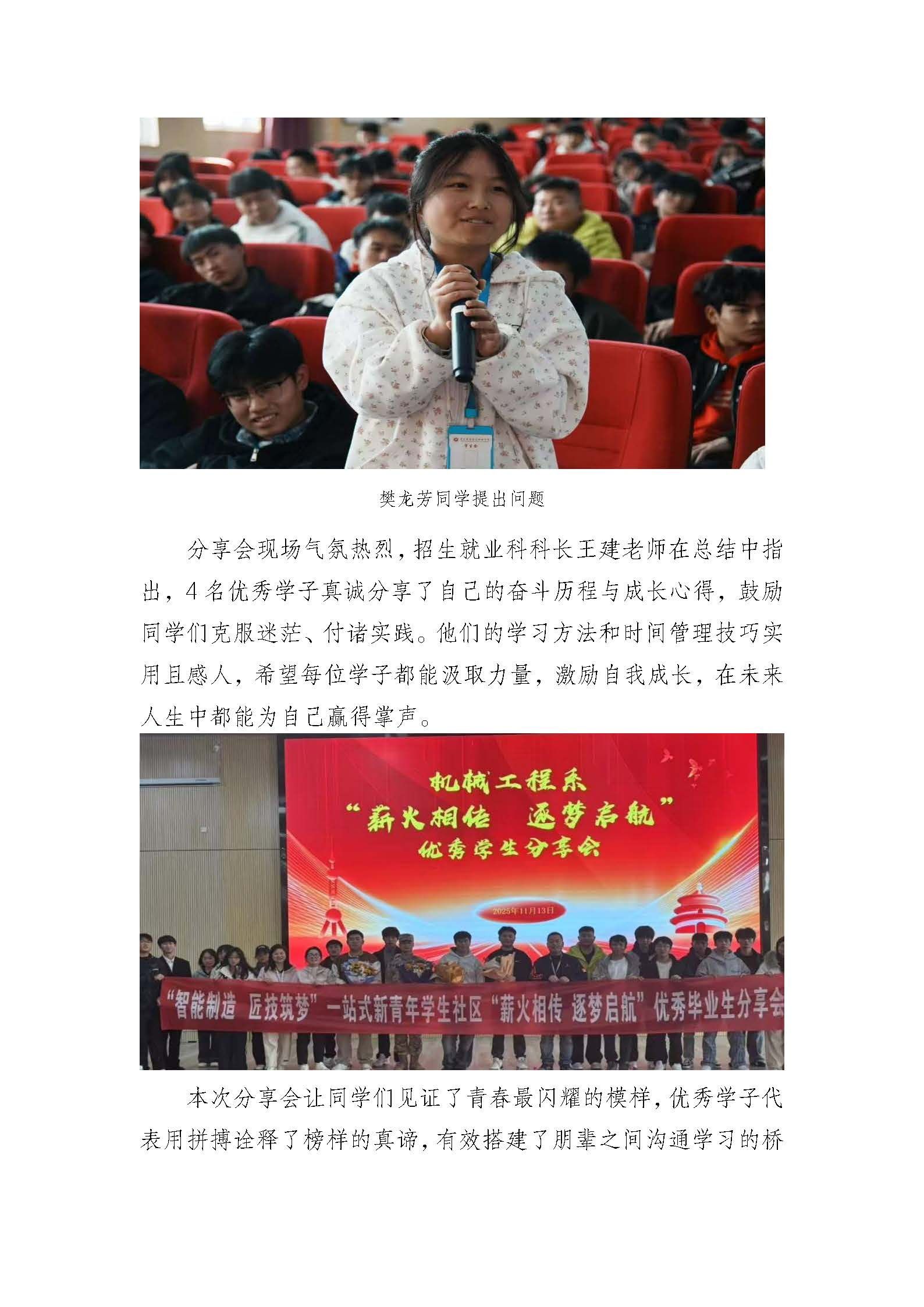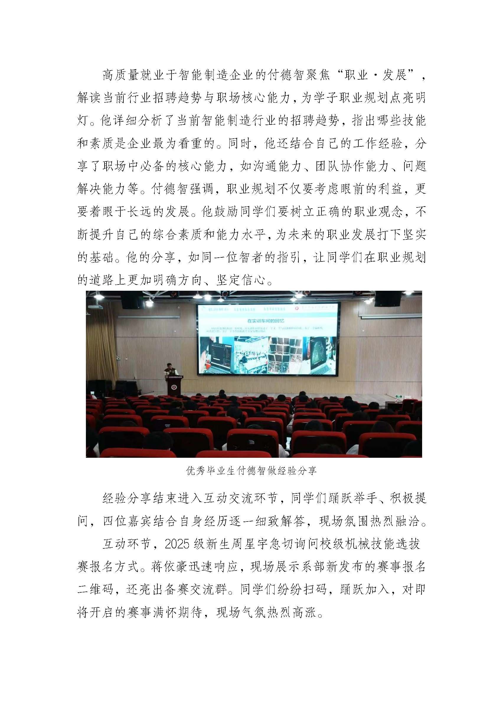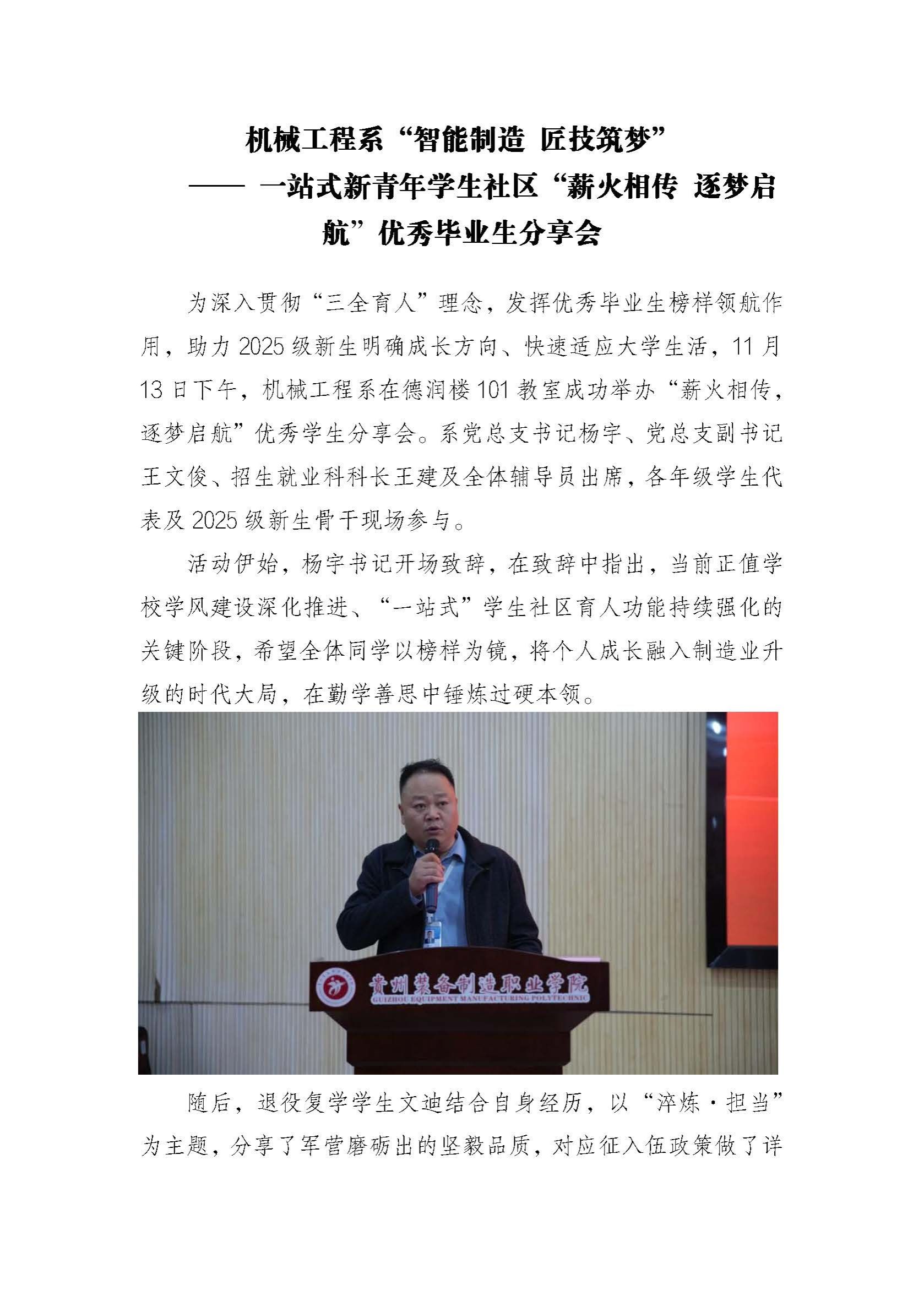 机械工程系“智能制造 匠技筑梦” —— 一站式新青年学生社区“薪火相传 逐梦启航”优秀毕业生分享会
