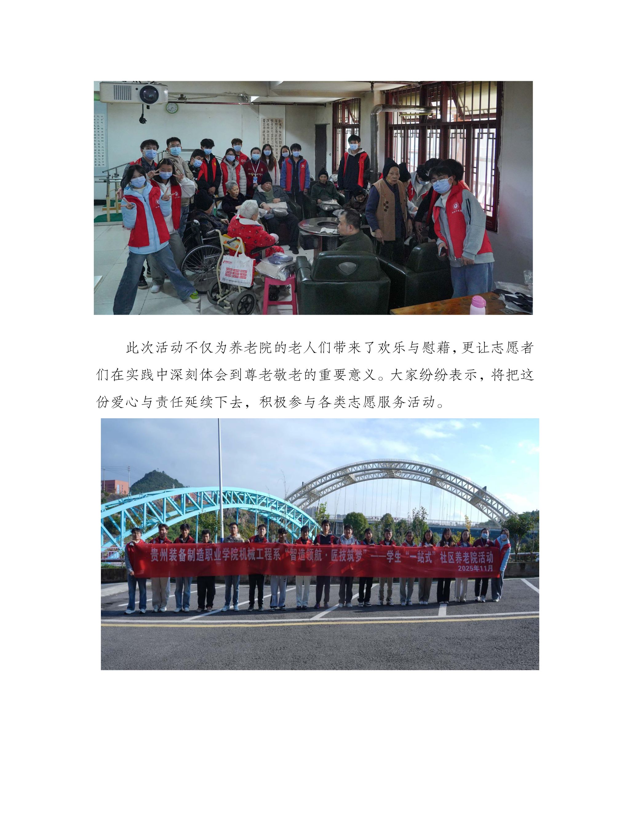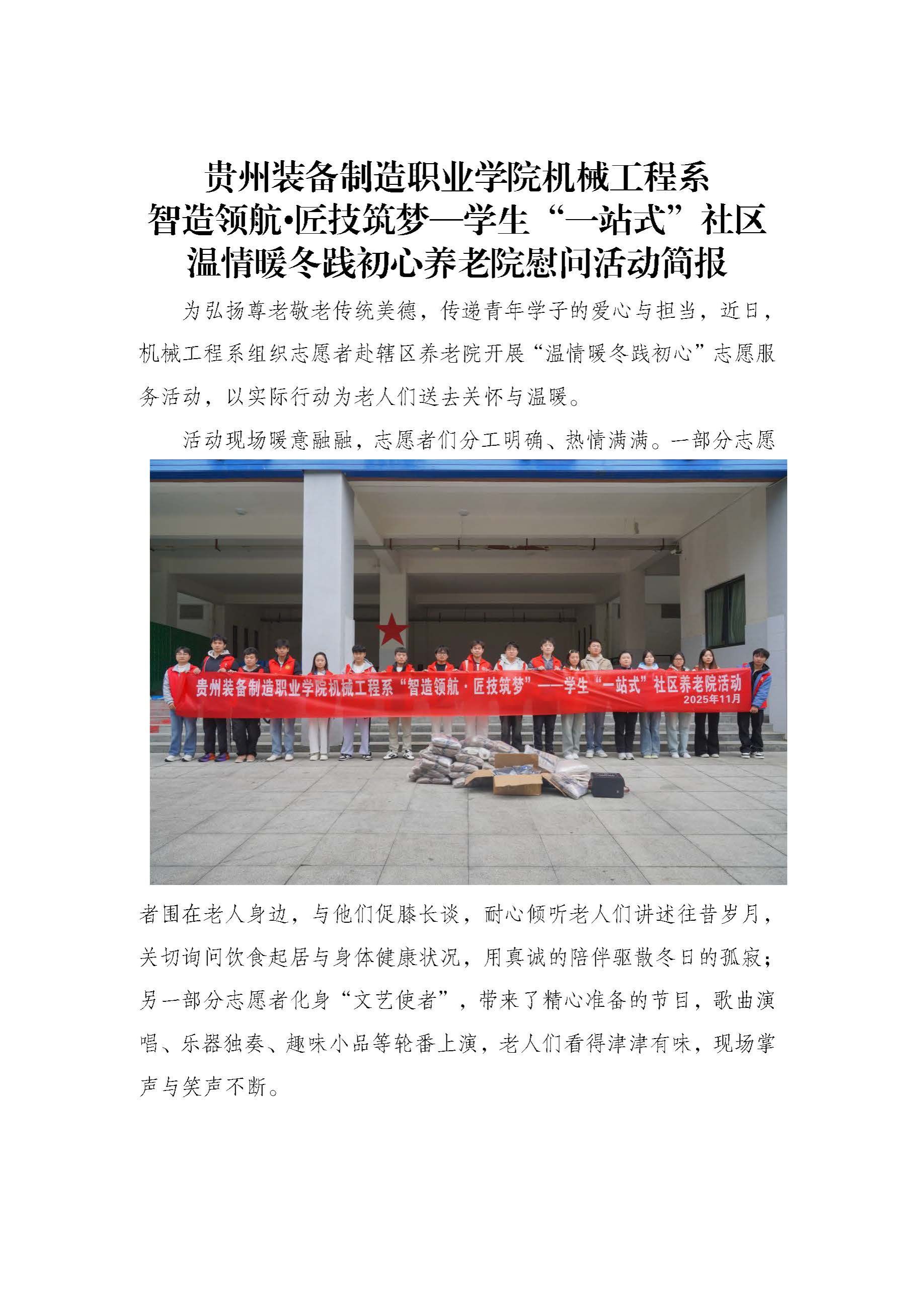 贵州装备制造职业学院机械工程系智造领航•匠技筑梦—学生“一站式”社区 温情暖冬践初心养老院慰问活动