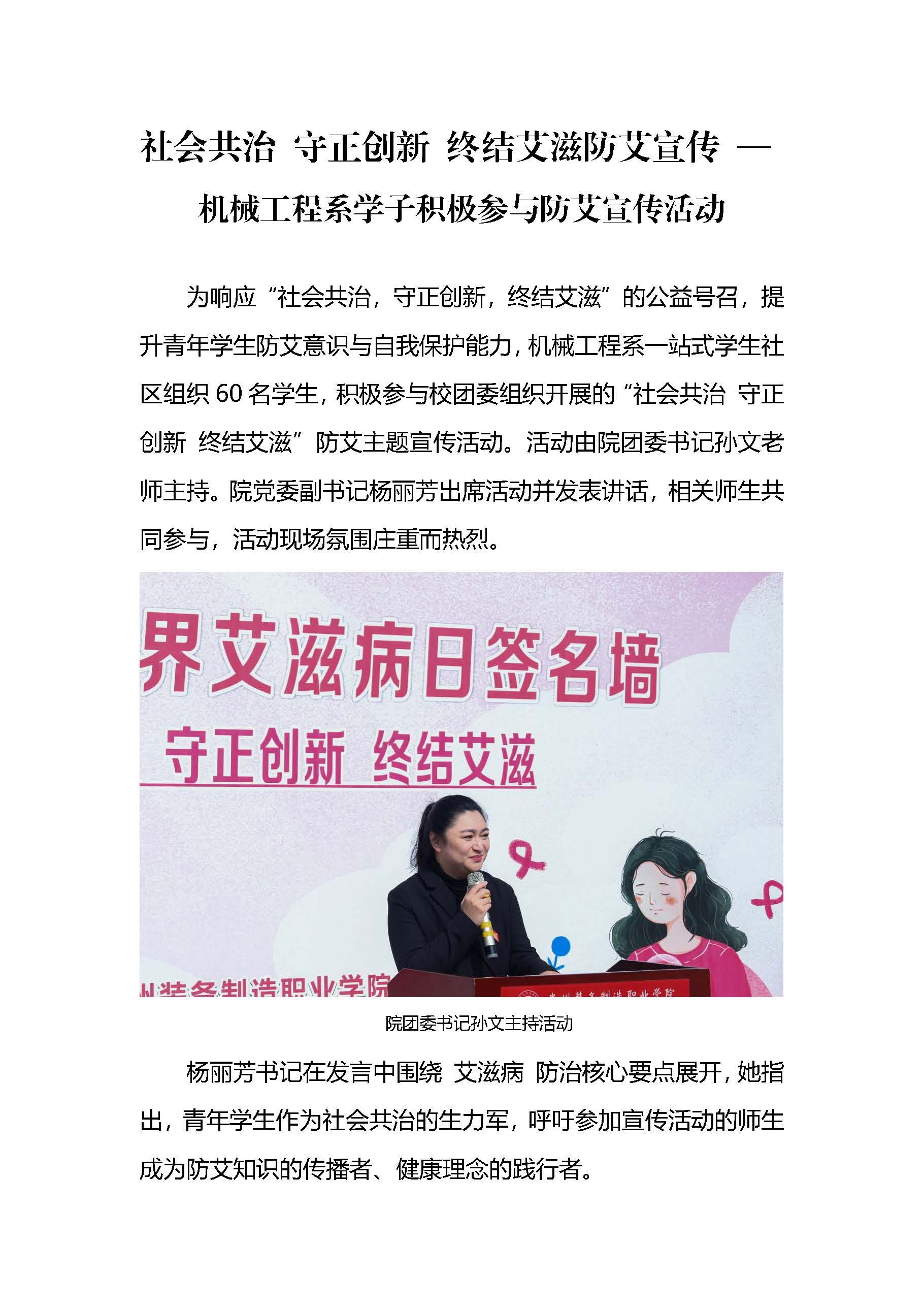 社会共治 守正创新 终结艾滋防艾宣传 — 机械工程系学子积极参与防艾宣传活动