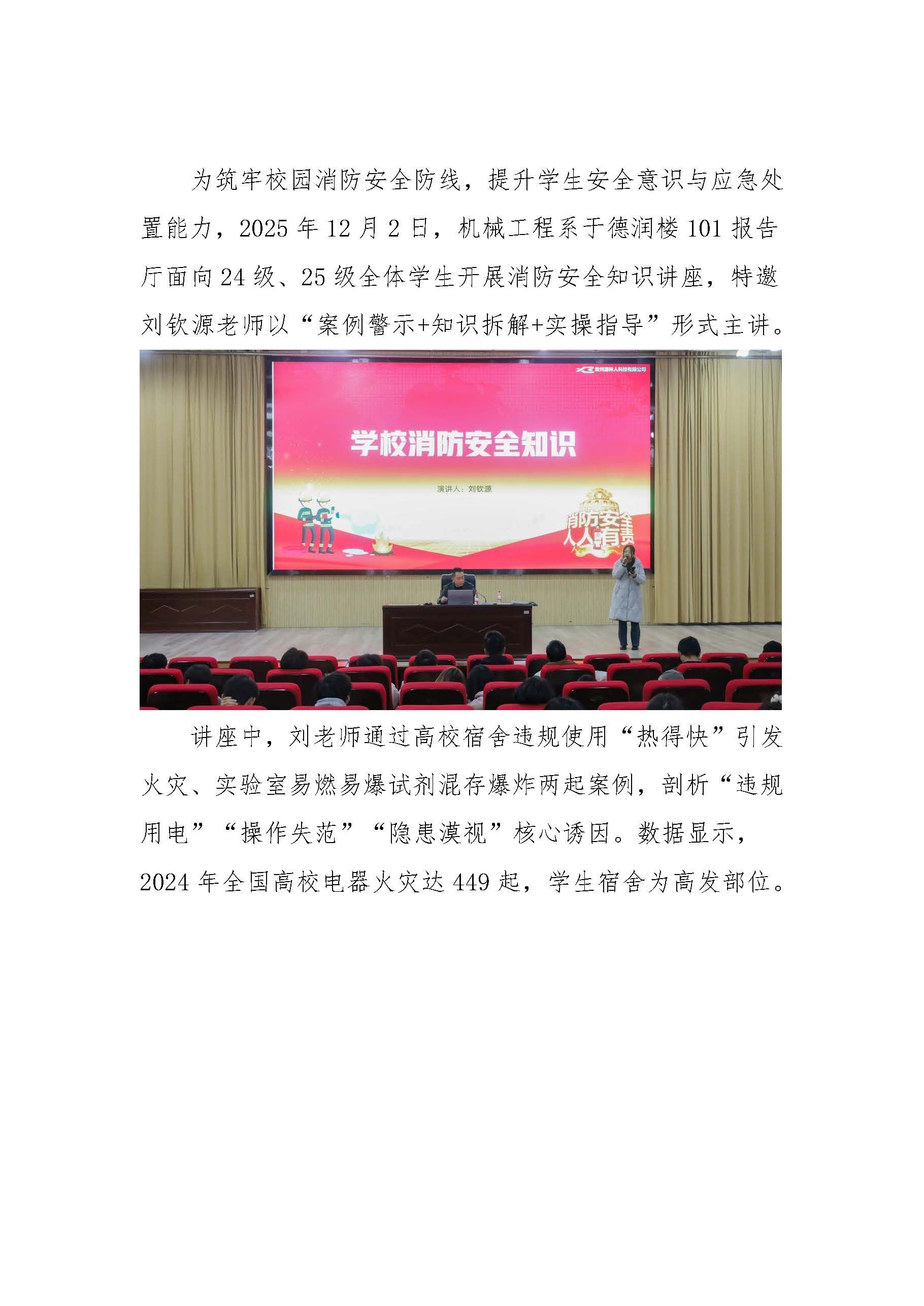 机械工程系开展智造领航•匠技筑梦—学生“一站式”社区消防安全知识讲座活动