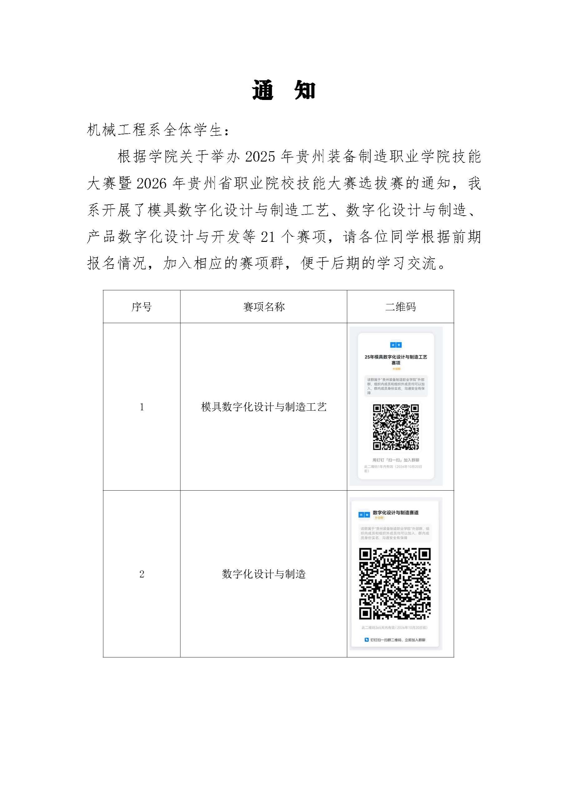 机械工程系关于举办2025年贵州装备制造职业学院技能大赛暨2026年贵州省职业院校技能大赛选拔赛的通知