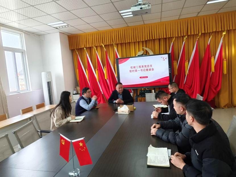 2025年12月26日下午,机械工程系党总支在博识楼501召开驻村第一书记座谈会,班子全体成员与高绪东、陈雄两位驻村第一书记面对面,共话乡村振兴阶段性成效与新年度打算。