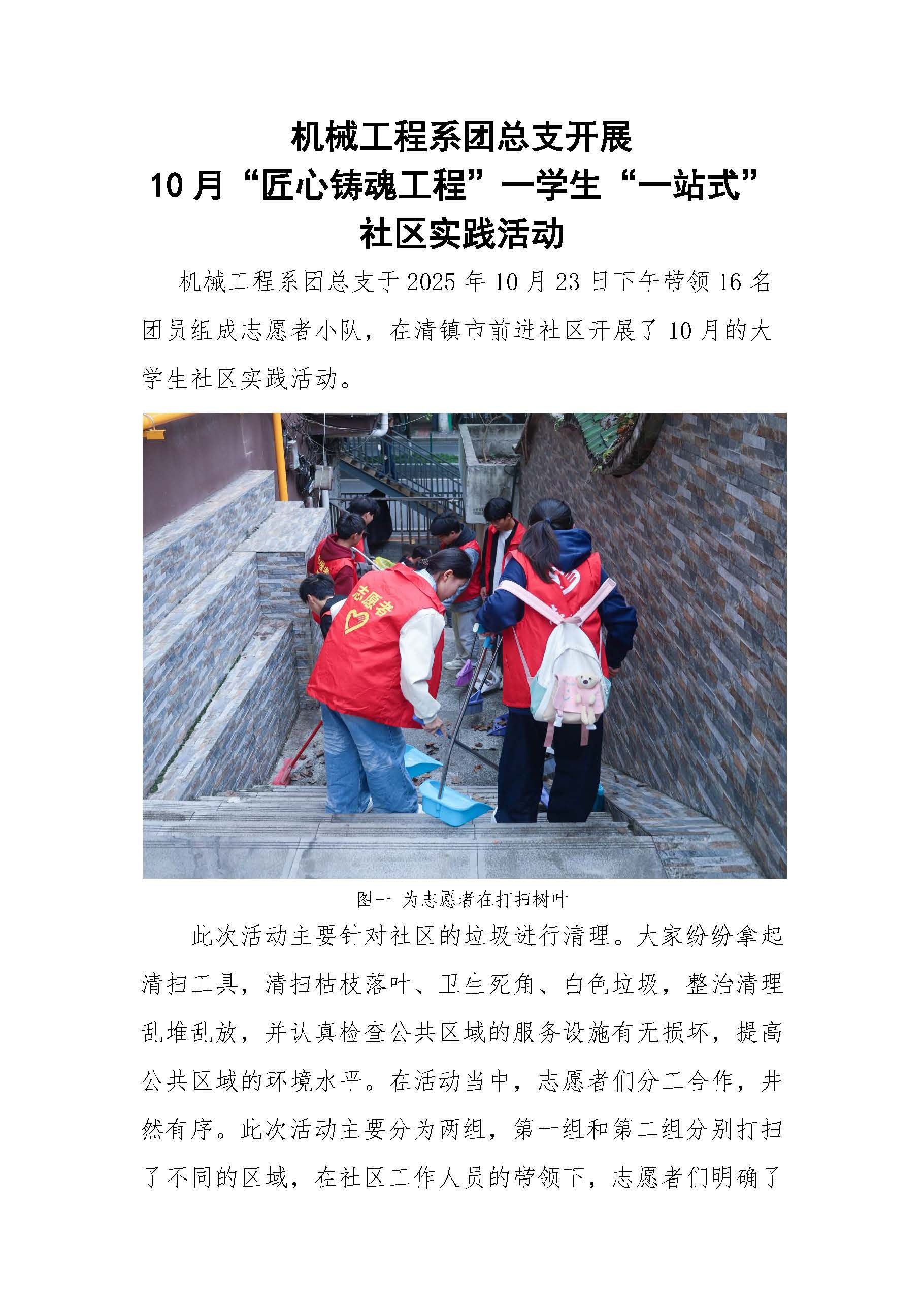 机械工程系团总支开展 10月“匠心铸魂工程”一学生“一站式” 社区实践活动