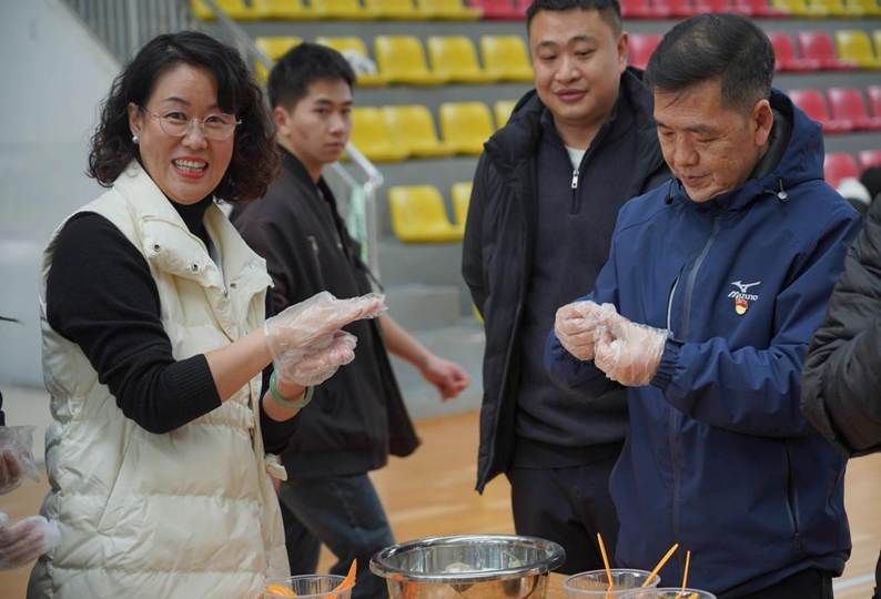 活动过程中,学院各级领导亲临现场与师生亲切互动,指导学生搓制汤圆、包裹馅料,让活动现场的温馨氛围愈发浓厚。同学们参与热情高涨,纷纷围站操作台旁积极尝试,一个个圆润饱满的汤圆在师生的巧手下相继成型,活动现场其乐融融。