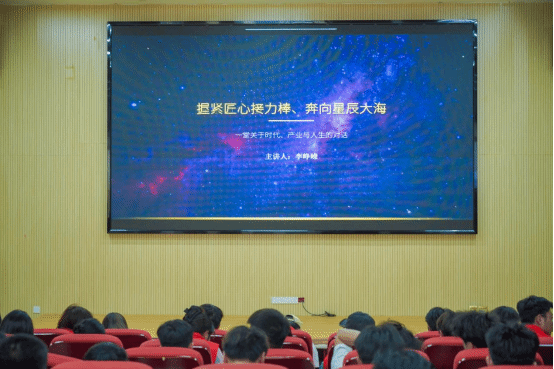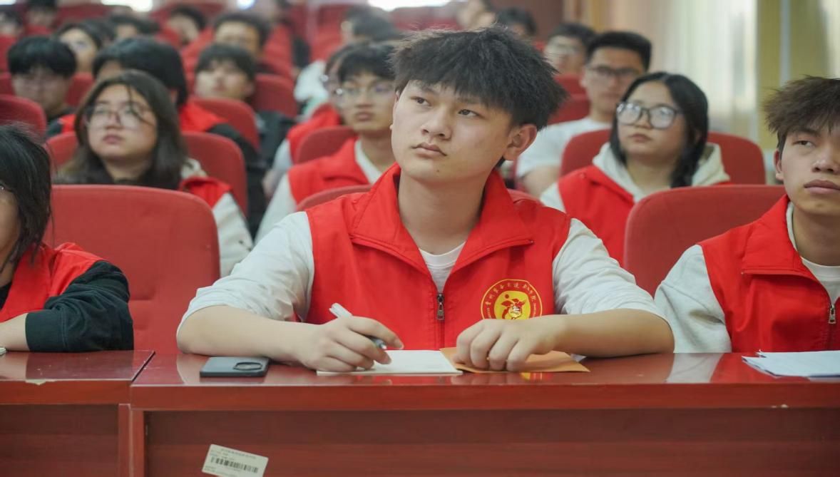 李峥嵘副书记的授课内容是:在思想引领中紧握匠心接力棒,奔赴属于新时代青年的星辰大海。授课过程中,全体青马班学员穿着统一的青马服,全程专注投入、认真记录。大家在笔记本上梳理重点、标注感悟,以端正的学习态度汲取知识养分,充分展现了青马学员昂扬向上的精神风貌与争做青年马克思主义者的坚定决心。阶梯教室内,专注的眼神、认真的笔触,汇聚成青年学子传承匠心。逐梦前行的蓬勃力量。