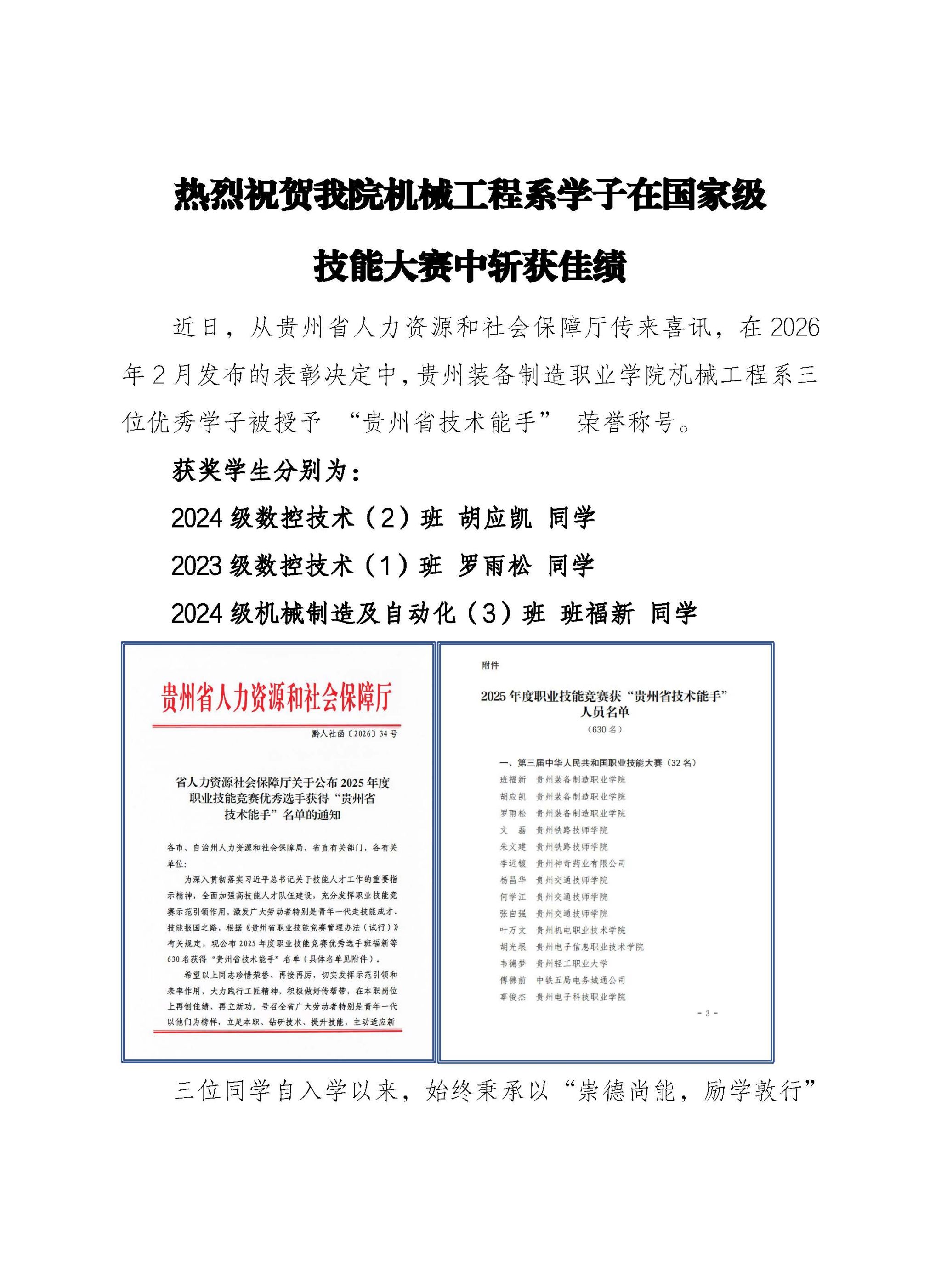 热烈祝贺我院机械工程系学子在国家级技能大赛中斩获佳绩