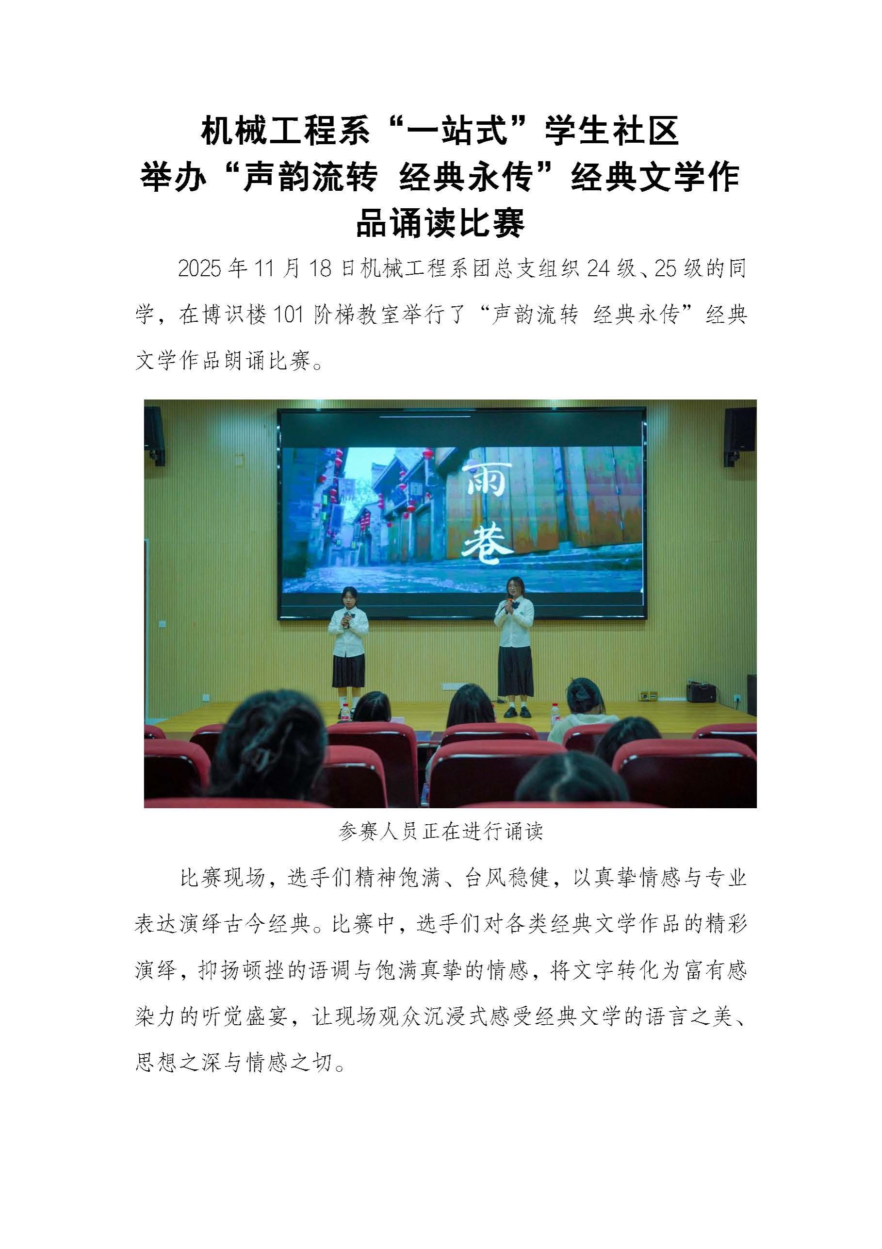 机械工程系“一站式”学生社区举办“声韵流转 经典永传”经典文学作品诵读比赛