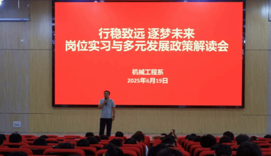2025年6月19日,机械工程系在德润楼101会议室举办“行稳致远,逐梦未来”岗位实习与多元发展培训讲座,为学生清晰梳理成长路径,解答发展困惑,尤其强化安全意识与政策认知,为学生多元发展保驾护航。讲座围绕六大核心内容展开深度解读。