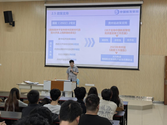 政策支持环节成为本次宣讲的亮点,系统梳理了企业与国家、地方政策的深度联动,明确企业在技术研发、人才引育、产业链协同等方面的“首创性”“示范性”政策保障(如设立专项研发基金、建设航空动力人才实训基地),为毕业生提供参与国家级项目的实践机会。